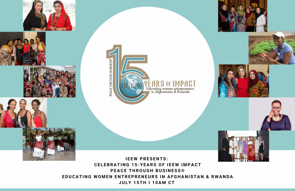On July 15, 2021, the Institute for Economic Empowerment of Women celebrated PEACE THROUGH BUSINESS® 15 years of impact educating women entrepreneurs in Afghanistan and Rwanda. PTB students, alumnae, and volunteers alike were acknowledged for their accomplishments at the event. The event was hosted by HoganTaylor based in Oklahoma City.